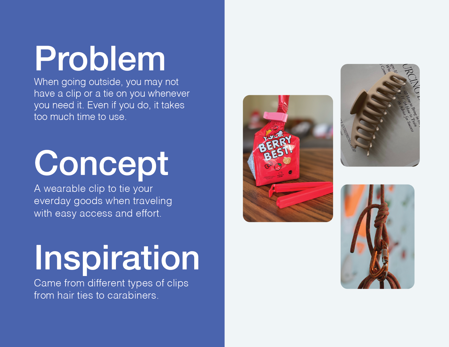 A wearable clip for your convenience that can tie simple portable goods along your journey.